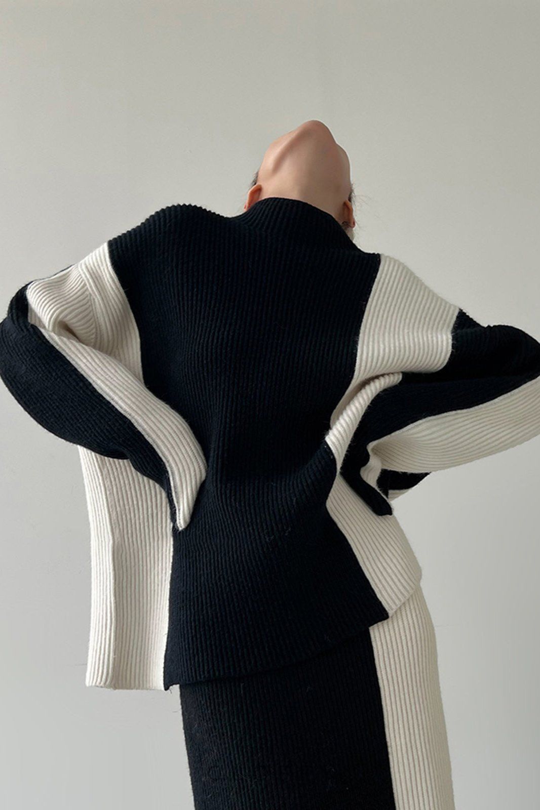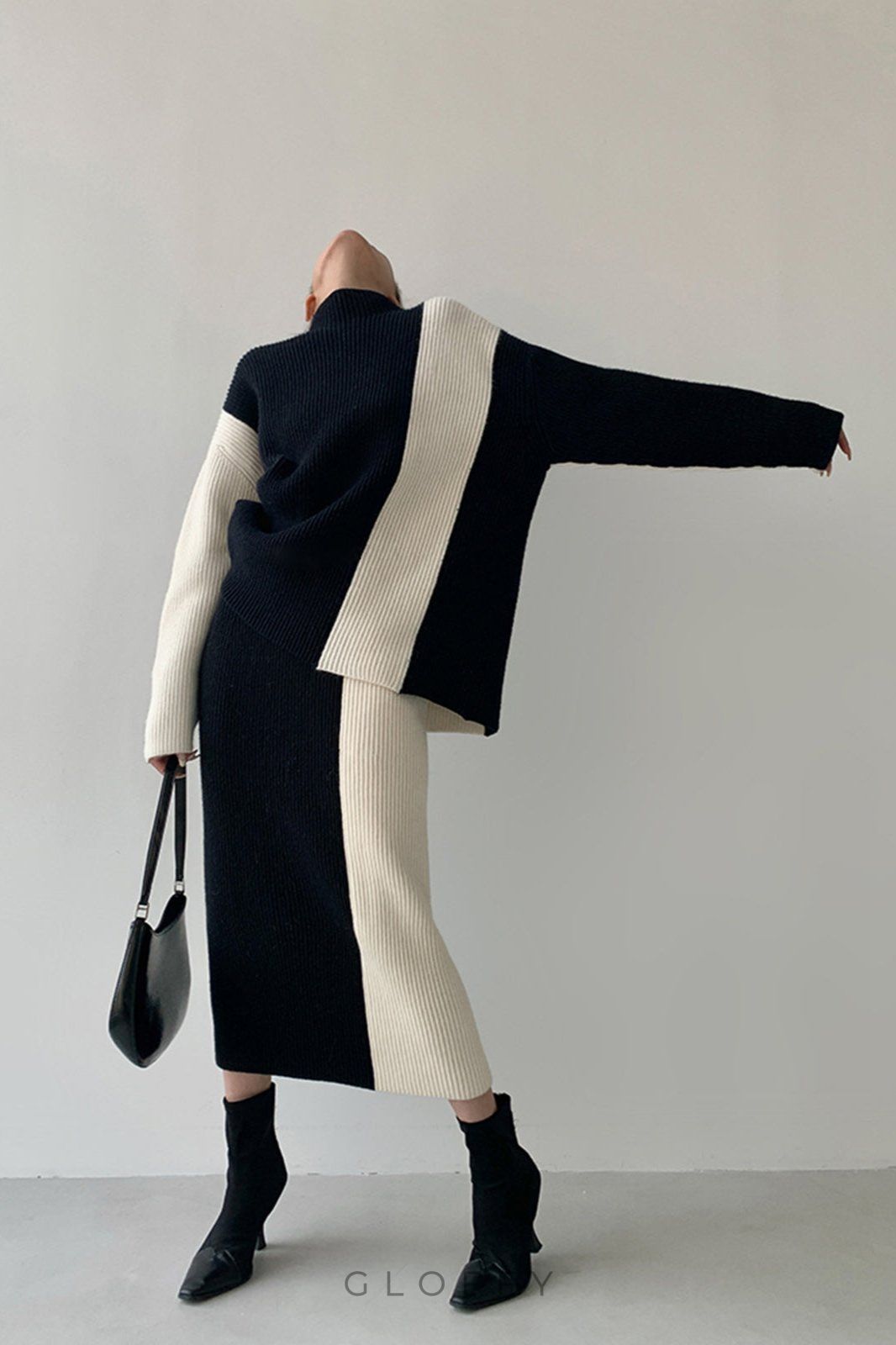 Amara Monokrom Kontrast Bluz ve Etek Takımı