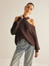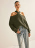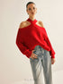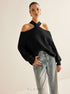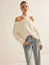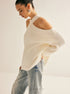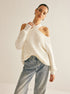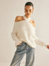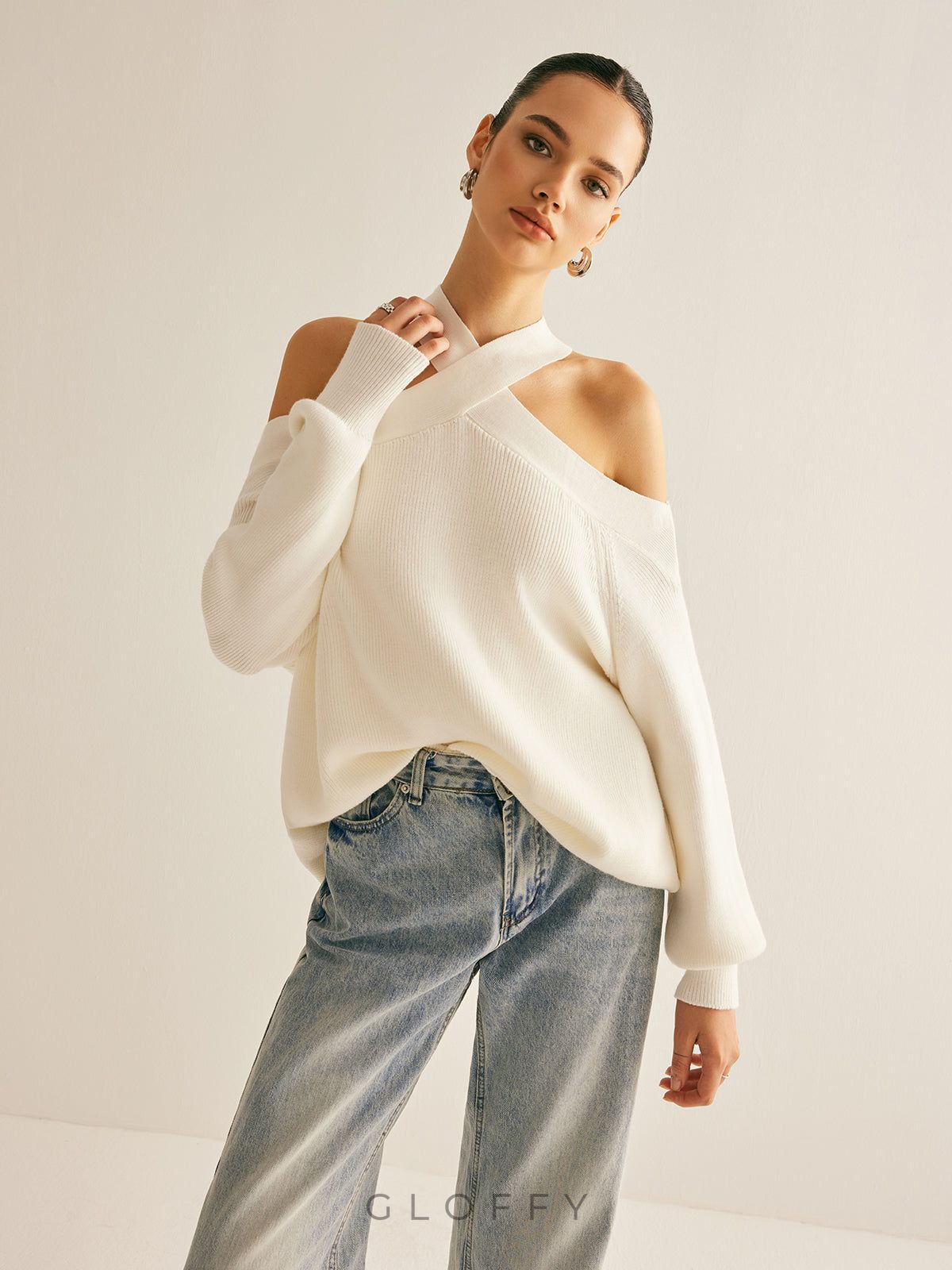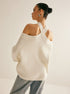 Omuz Dekolteli Çapraz Bantlı Oversize Kazak – Ekru