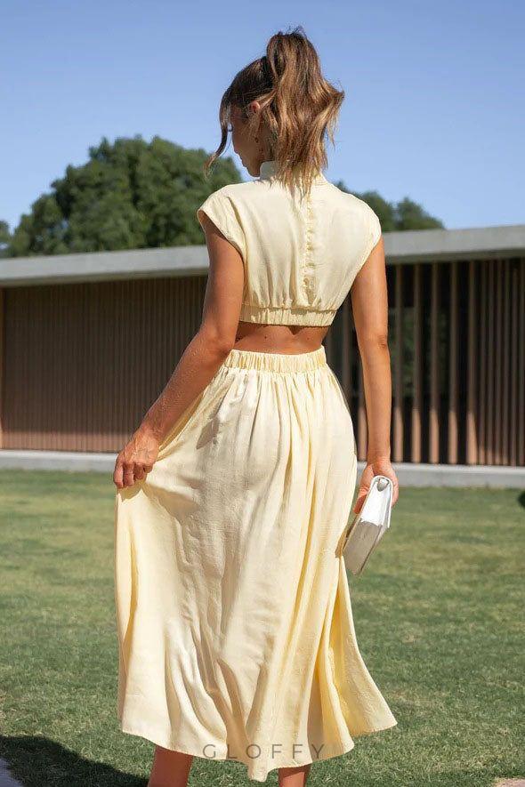 Beli Dekolteli Midi Elbisemiz ile yaz maceralarına hazır olun. Konfor ve stil için tasarlandı. Bu elbise, göz alıcı bir bel tasarımına ve kullanışlı ceplere sahiptir. Tatiller için mükemmel. plaj günleri. veya gündelik geziler. Bu şık ve çok yönlü parçayla sıcak hava gardırobunuzu yükseltin.