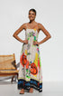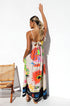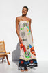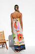 Canlı, çok renkli baskıya sahip hafif maksi elbisemizle zahmetsiz şıklığı keşfedin. Ayarlanabilir spagetti askılar mükemmel uyum sağlarken, şık kesimli ve kendinden bağlama detaylı elastik sırt kısmı benzersiz bir dokunuş katıyor.