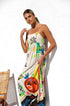 Göğüs altından zarif bir şekilde düşecek şekilde tasarlanan bu elbise, tüm vücut tiplerine uygundur. Baskı yerleşiminin giysiye göre değişeceğini ve her parçanın benzersiz olmasını sağlayacağını lütfen unutmayın. Güneşli günler veya gündelik geziler için ideal olan bu uzun elbise, gardırobunuza çok yönlü bir katkı sağlayacaktır. Tarzınızı benimseyin ve bugün siparişinizi verin!