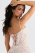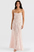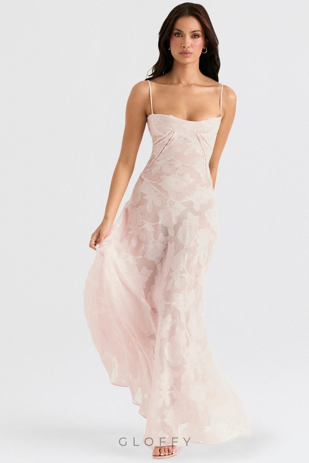 Hafiflik ve zarafetin birleştiği Seren elbise, yumuşak pembe tonu ve çiçek desenli transparan dokusuyla romantik bir görünüm sunar. İnce askıları ve akıcı siluetiyle her adımda zarif bir iz bırakır.