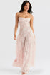 Seren İnce Askılı Dantel Desenli Maxi Elbise