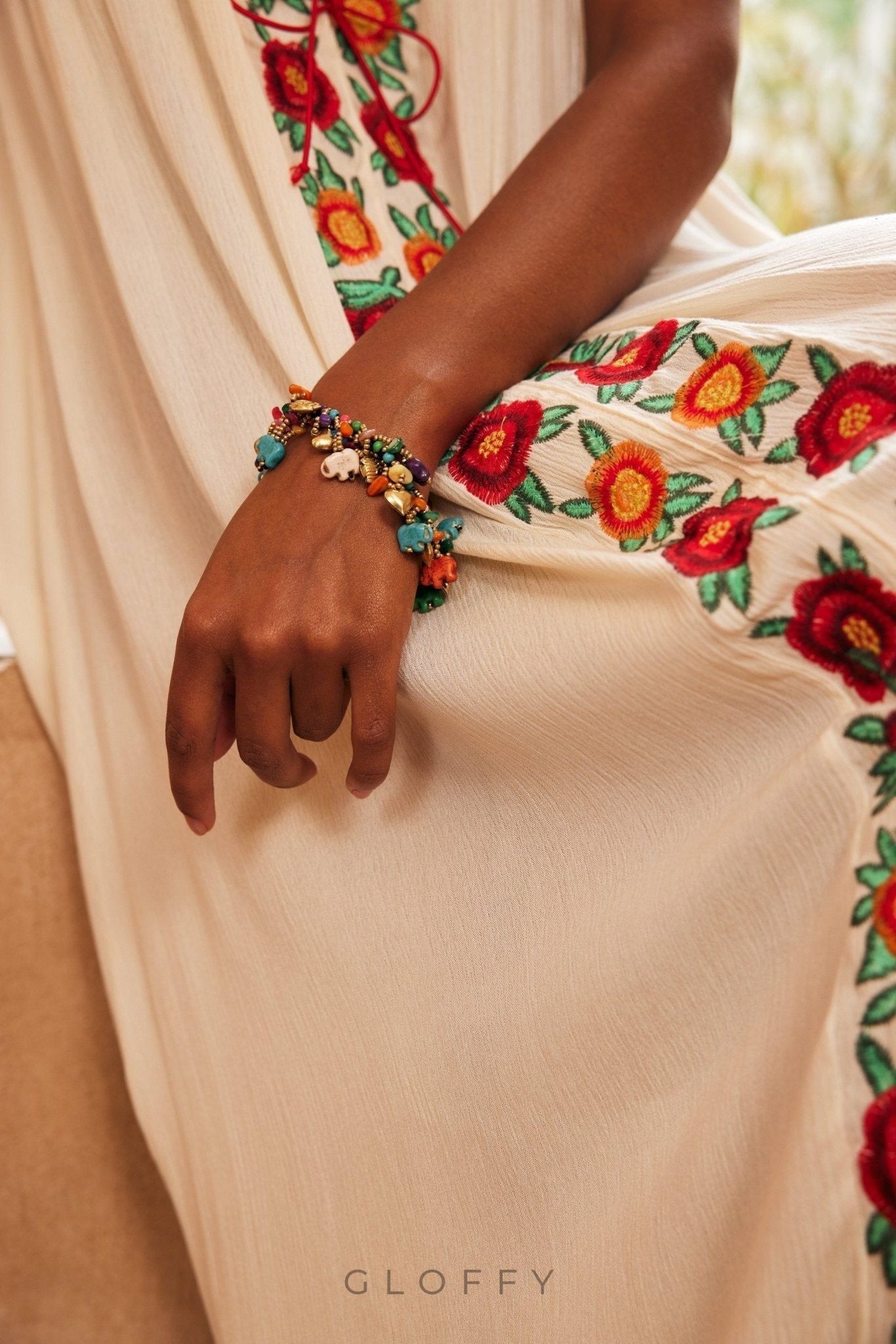 Üst üste takmak veya tek başına giymek için mükemmel olan bu bileklik, her türlü kıyafete sanatsal bir dokunuş katar. Bohem modanın özünü yakalayan bu enfes parçayla özgür ruhunuzu kucaklayın ve bireyselliğinizi ifade edin. Aksesuar oyununuzu bugün yükseltin!