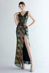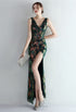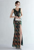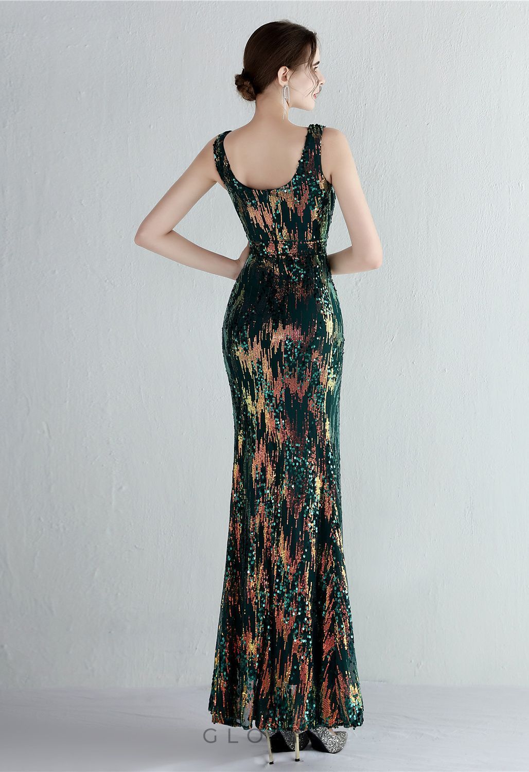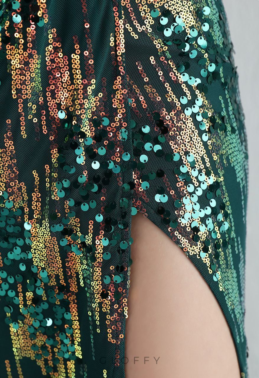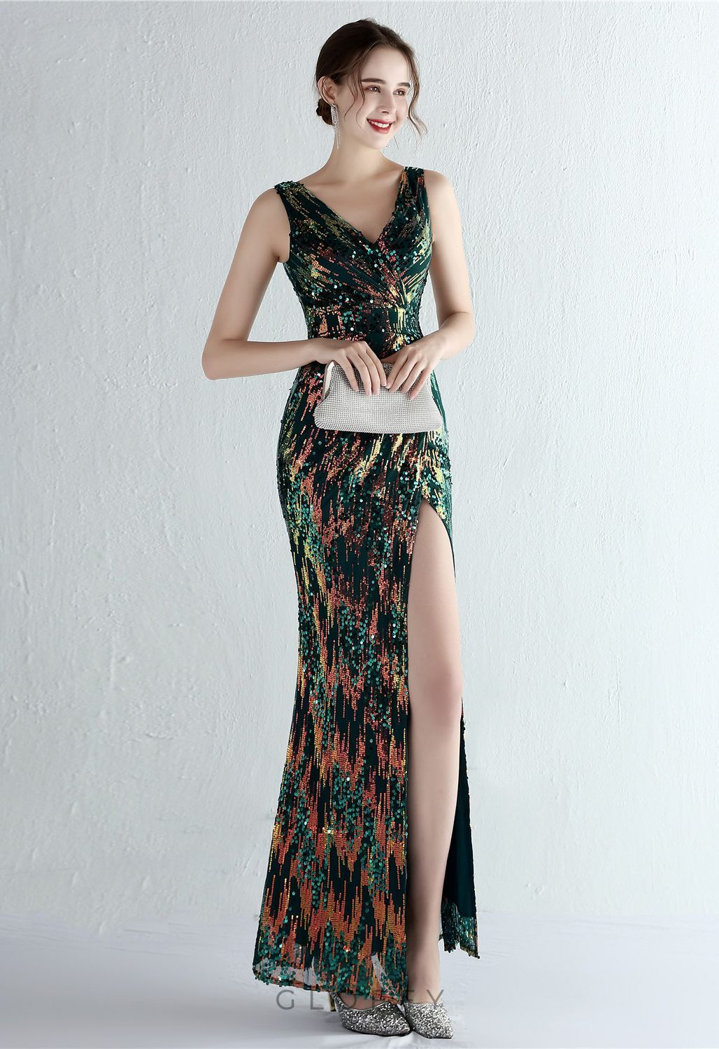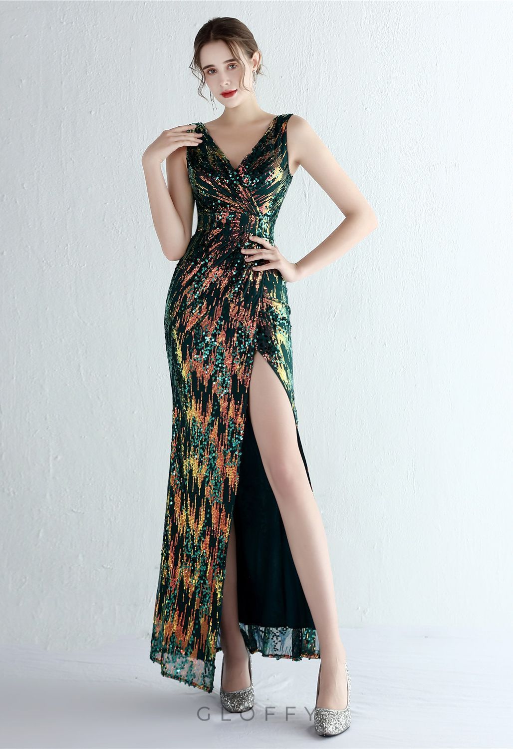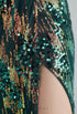 Emerald Çok Renkli Payetli Yırtmaçlı Maxi Elbise