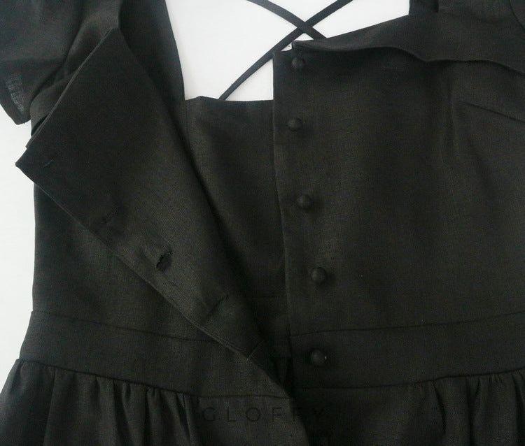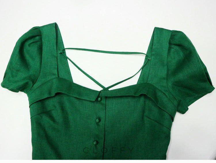 Marcelle Bağcıklı Sırt Detaylı Düğmeli Midi Elbise