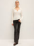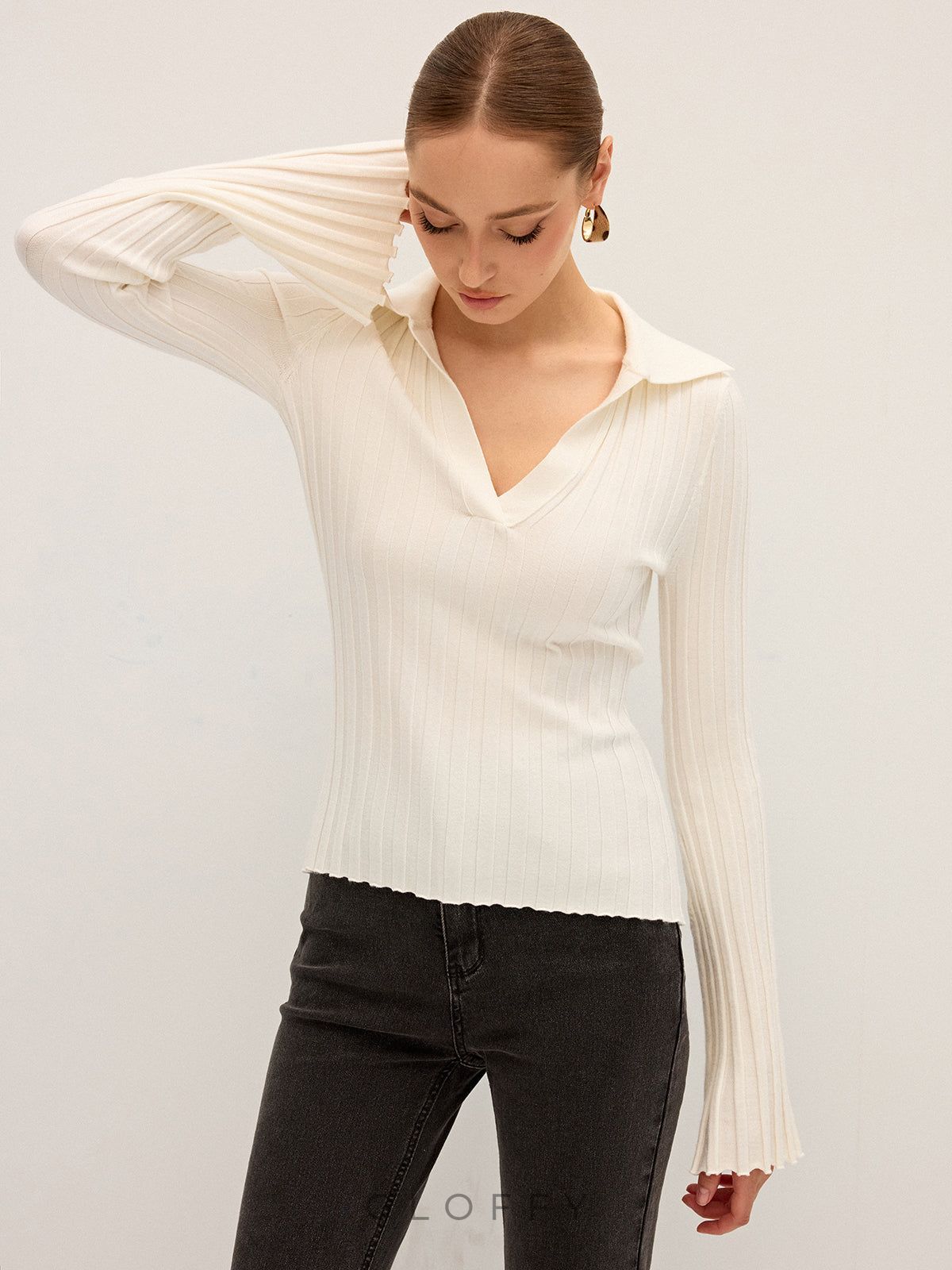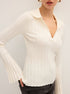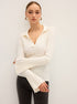 Kruvaze Yaka İspanyol Kol Fitilli Triko Bluz – Ekru