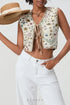 Moda öncüsü jakarlı yeleğimizle gardırobunuzu yükseltin. Şık V yakalı ve karmaşık desenlerle tasarlanan bu kısa, önü açık yelek, çarpıcı panel detaylarının şık bir karışımını sunuyor. Tek göğüslü, çok düğmeli kapatma, sofistike bir dokunuş katıyor.
