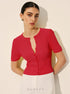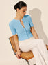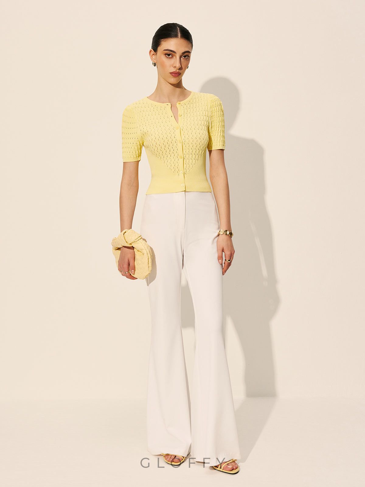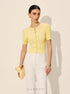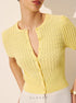 Düğmeli Ajurlu Kısa Kollu Triko Bluz – Sarı