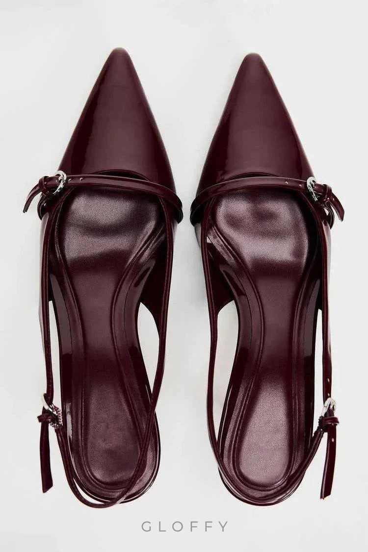 Sivri Burun Tokalı Askılı Yüksek Topuklu Ayakkabı