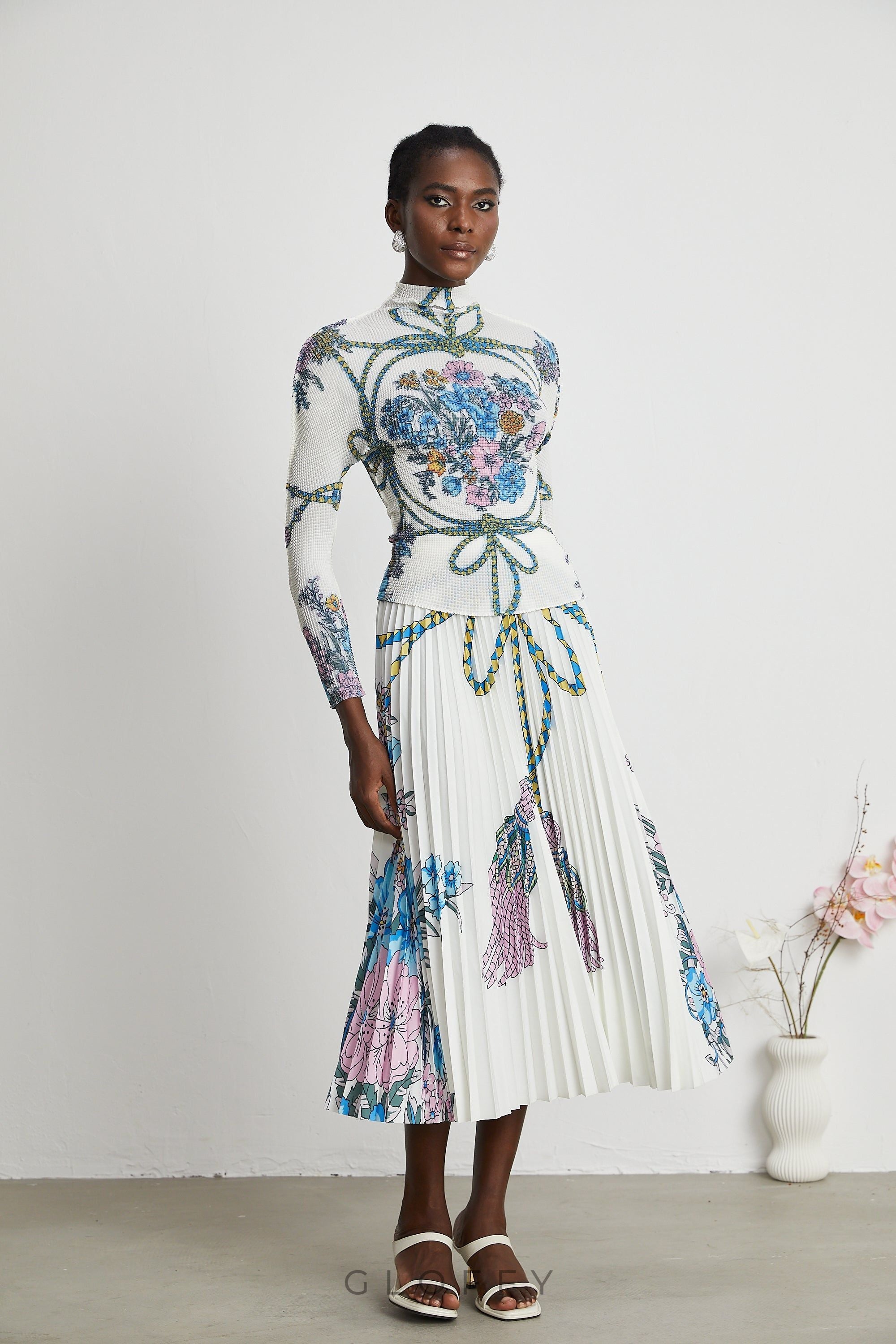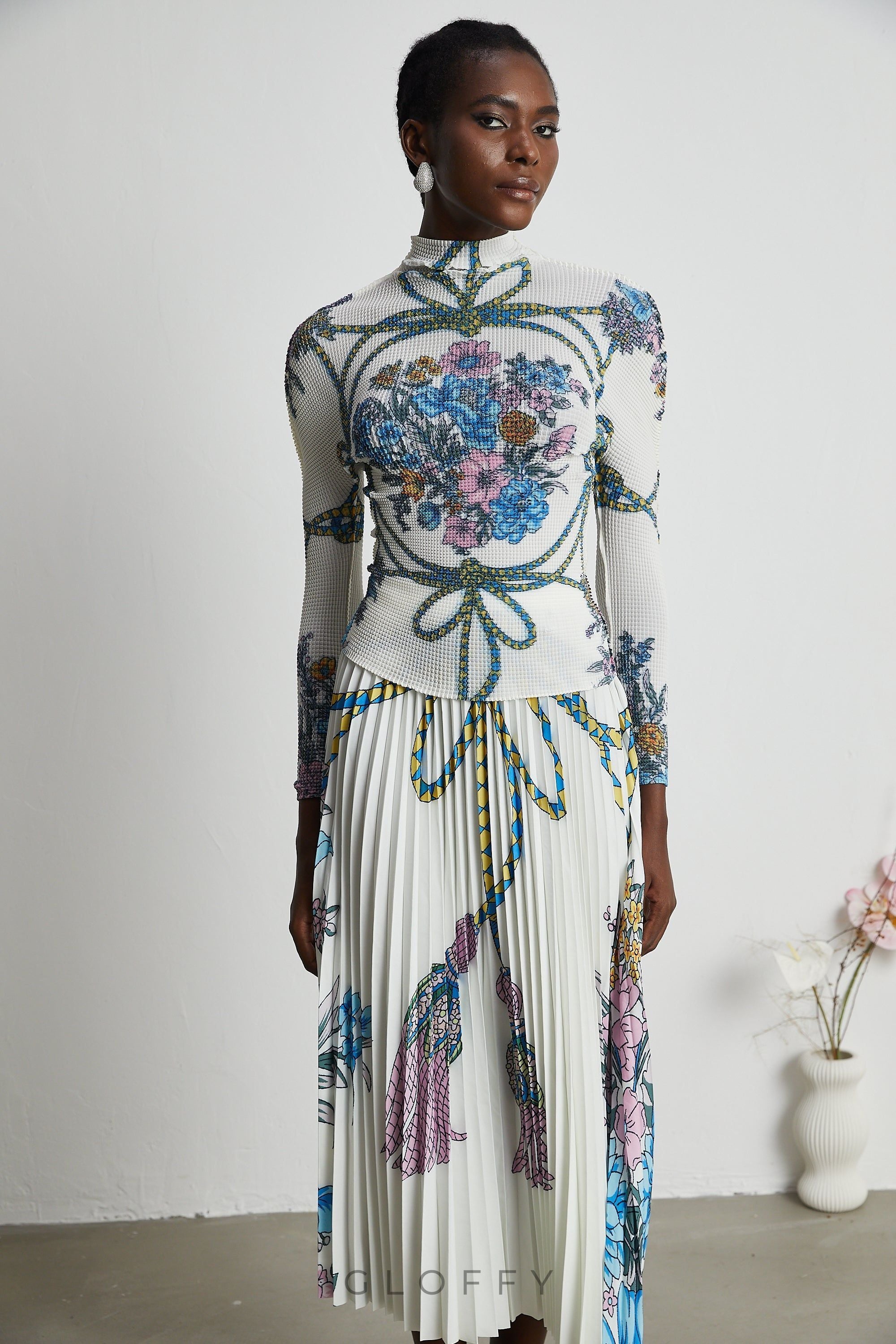 Bu set, desenli ve zarif tasarımıyla şıklığı ön planda tutan kadınlar için ideal bir seçimdir. Hem günlük hem de özel davetlerde tercih edilebilecek modern ve çarpıcı bir kombin sunar.