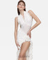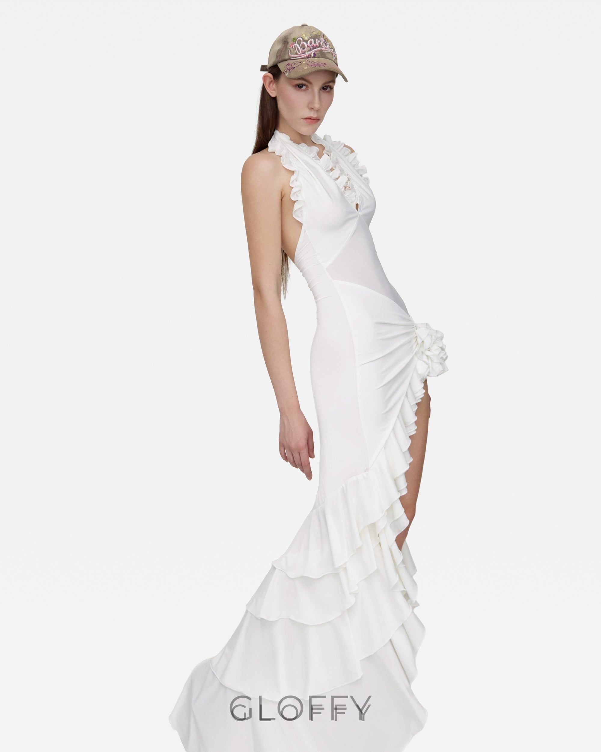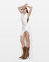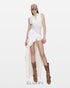 Amara Zarif Çiçek Detaylı Asimetrik Beyaz Elbise
