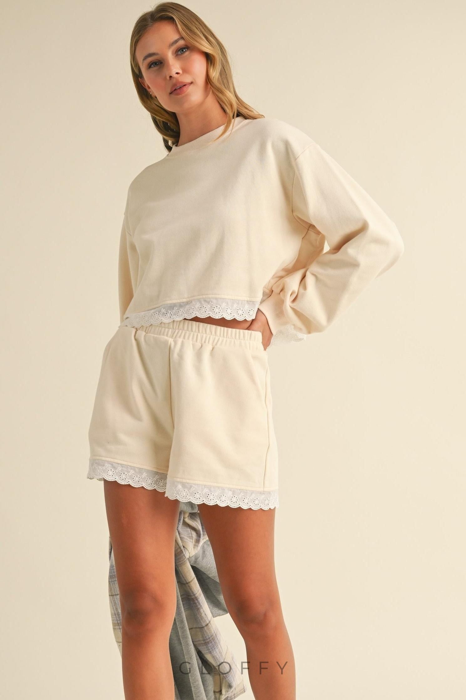 Jasmine Set ile zahmetsiz şıklık konforla buluşuyor. Minimalist tasarımına sofistike bir dokunuş katan narin dantel vurgulara sahip bu şık set, uzanmak veya gündelik geziler için mükemmeldir.