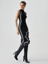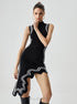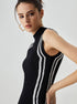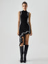Knit Asymmetric Contrast Trim Mock Neck Midi Elbise