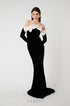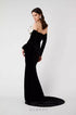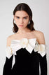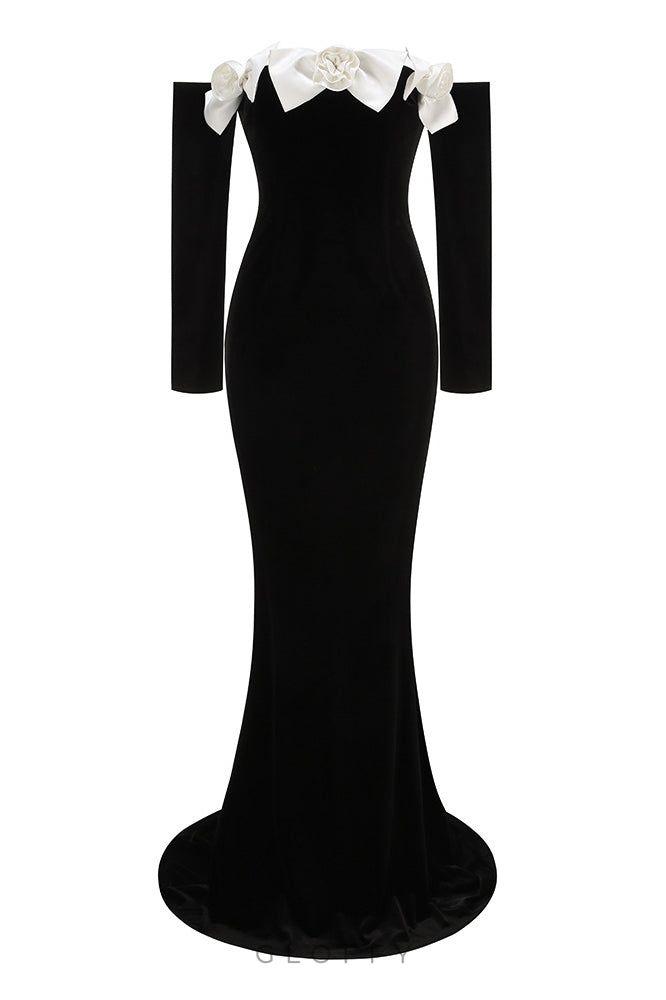 Papyonlu omuz çizgisine ve düşük omuz tasarımına sahip, yere kadar uzanan kadife elbisemizle göz alıcı bir ifade yaratın. Geniş kenarlı, vücuda oturan siluet zarif ve hoş bir şekil yaratırken, yüksek esnekliğe sahip kumaş rahat bir uyum sağlar.