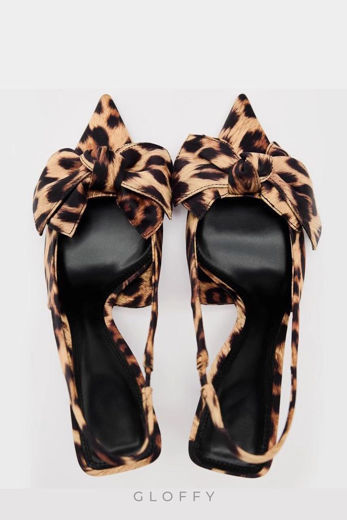• Tasarım: Leopar desenli, kelebek fiyonk detaylı ve yan kesimli sivri burunlu ayakkabı