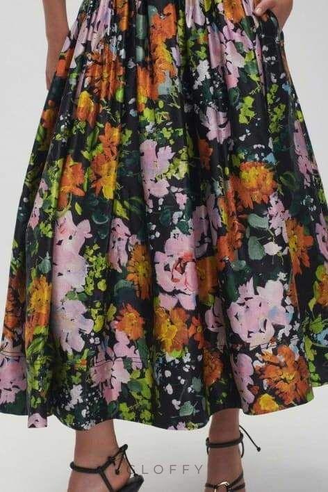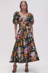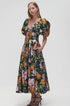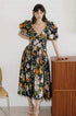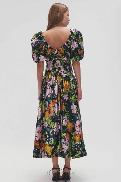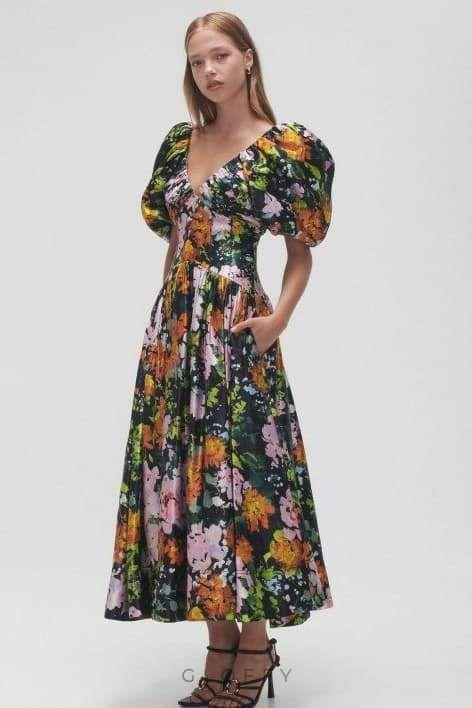 Megan Baskılı V Yaka Puf Kollu Midi Elbise