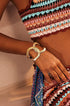 Metalik Dokulu Geometrik Bileklik, cesur geometrik şekiller ve zengin dokulu metalik kaplamayla çarpıcı bir tasarıma sahiptir. Çağdaş tarzı her kıyafete sofistike bir hava katar.