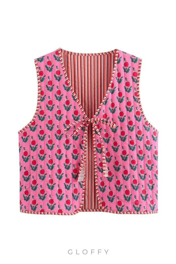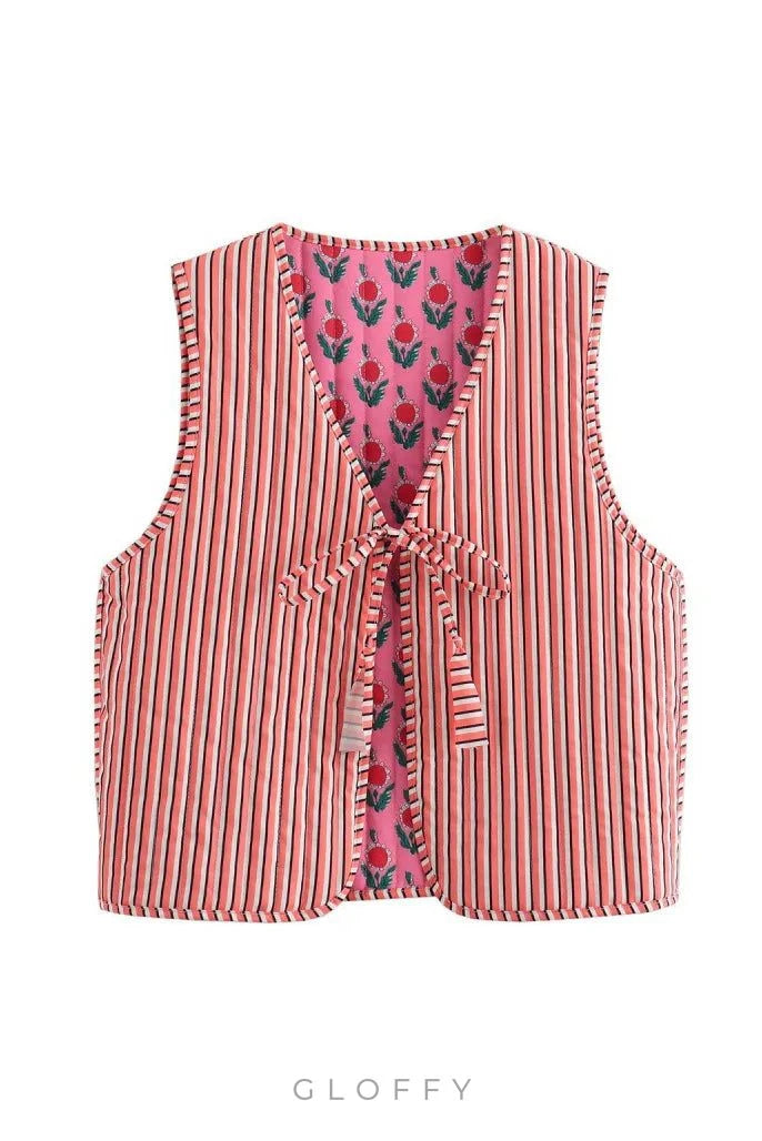 Çift taraflı renk bloklu baskılı yeleğimizle sokak stilinizi yükseltin. Bu benzersiz tasarım, rahatlığınızı korurken kişiliğinizi ifade etmenize olanak tanıyan göz alıcı desenlere sahiptir.