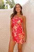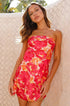 Miya Pembe Kırmızı Çiçekli Mini Elbise