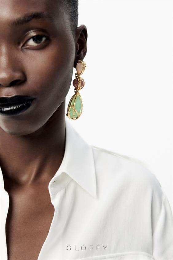 Multi Gem Dangle Küpeler, zarif bir şekilde sallanan ve her harekette ışığı yakalayan bir dizi renkli taştan oluşuyor. Canlı ve dinamik tasarımları her kıyafete cesur, sofistike bir dokunuş katar.