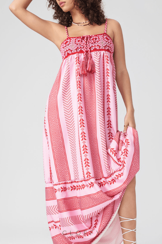 Bahçe partileri veya gündelik etkinlikler için mükemmel olan bu elbise, topuklu ayakkabılarla giyilebilir veya sandaletlerle rahat bir tarz yaratılabilir.