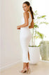 Görünmez bir arka fermuar kusursuz bir görünüm sağlar ve arka bacak bölmesi ilave bir drama ve hareket hissi sağlar. Polyesterden üretilen bu elbise, her etkinlikte unutulmaz bir izlenim bırakmak için mükemmel olan şık ve hoş bir kesim sunar.
