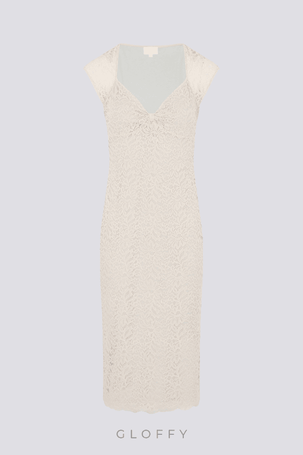 Nora Çiçekli Dantel Fiyonk Midi Elbise