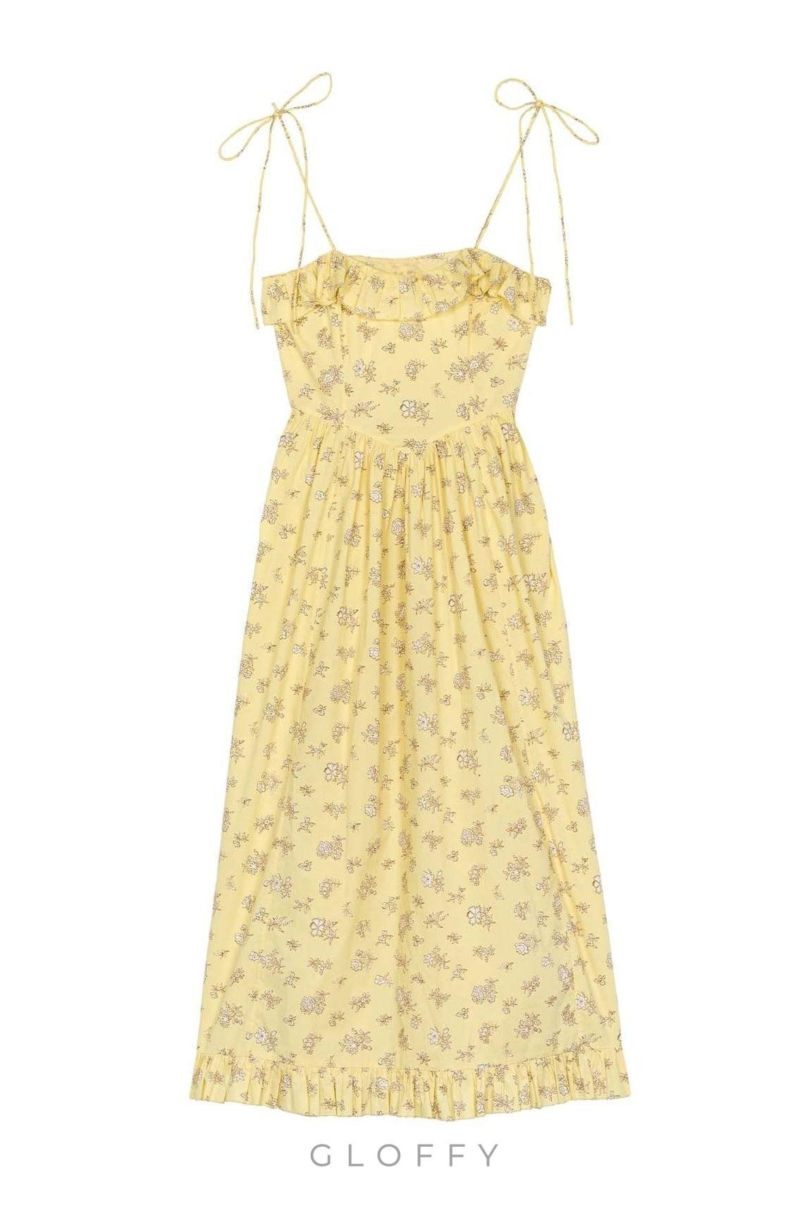 Novia Baskılı Volanlı Kesim Slip Midi Elbise