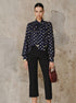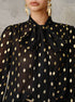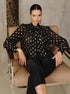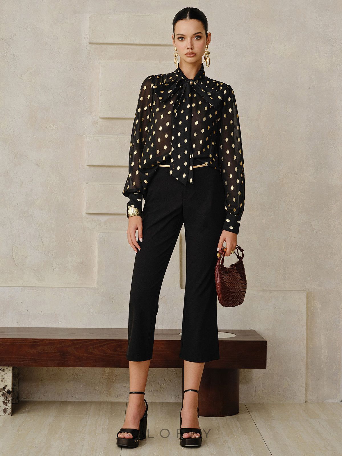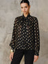 Puantiyeli Kurdele Yaka Yarı Transparan Bluz