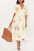 Koeei® bu eşsiz şenlikli çiçek desenli kabarık kollu midi elbiseyle bohem zarafetini yansıtıyor. Bu midi elbise, canlı çiçek desenli ve gösterişli kabarık kollara sahiptir. V yaka ise sofistike bir dokunuş katıyor. Hafif polyesterden üretilmiştir ve hem özel günler hem de gündelik durumlar için idealdir.