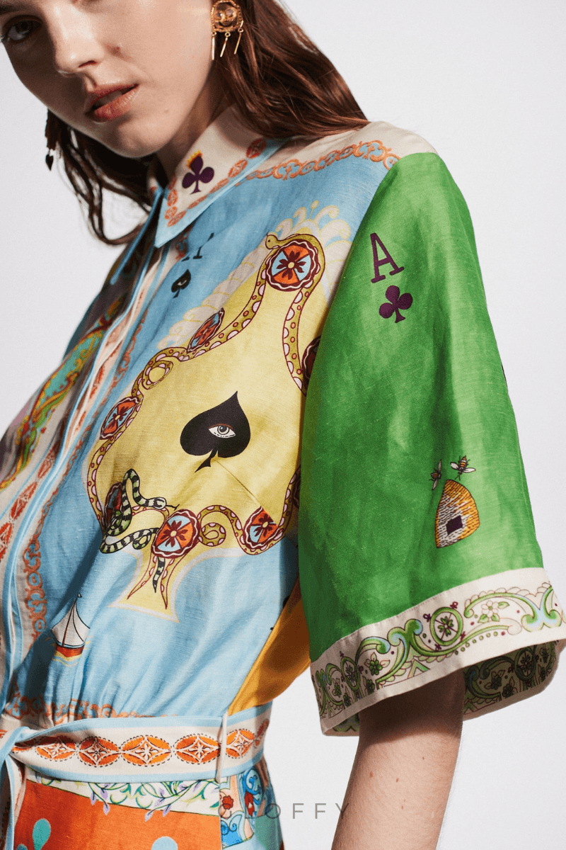 - Tasarım: Zil kollu ve baskılı tasarımlı düğmeli elbise
