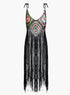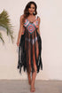 Gökkuşağı Kare Desenli Saçaklı Tığ Örgü Cami Üst