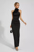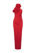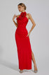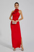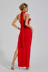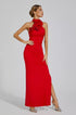 Natalie Kırmızı Çiçek Desenli Büzgülü Halter Maxi Elbise