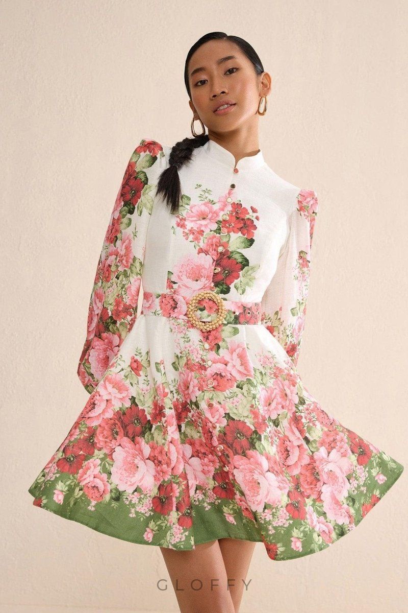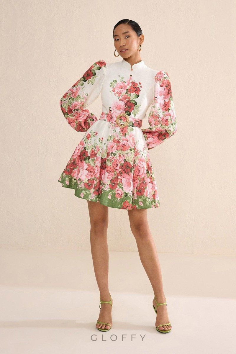 Dik Yaka Çiçek Desenli Mini Elbise ile şıklığı kucaklayın. Kendinden tokalı kemeri ve uzun, elastik balon kollu olan bu elbise, hoş bir kesimi hafif esnek polyester kumaşla birleştiriyor. Mini uzunluk ve çiçek tasarımı her durum için şık ve sofistike bir görünüm sunar.