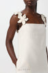 Çiçek Aplikeli Kare Yaka Mini Elbise ile şık bir şekilde dışarı çıkın. Bu kolsuz elbise, göz kamaştıran kare yaka ve zarif çiçek aplikeli detaylara sahiptir ve gardırobunuza çekicilik katmak için mükemmeldir. İki yan cep ve düz etek kısmı hem pratiklik hem de şıklık katar.