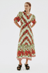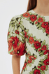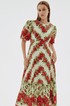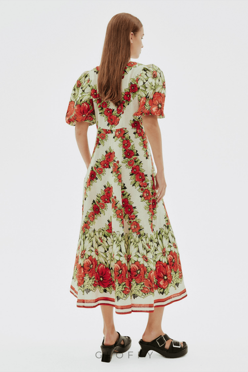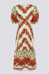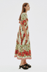 Rosalinde Yuvarlak Yaka Çiçekli Uzun Elbise Kırmızı