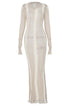 Ruth Splicing Dokulu Örgü Uzun Elbise