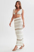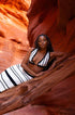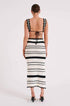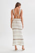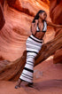 Bu sırtı açık elbise, hoş bir V yakaya ve kişiye özel uyum için ayarlanabilir askılara sahiptir. Elastik ve büzgü ipli bel kısmı rahat, kişiye özel bir siluet sağlarken, balık kuyruğu etek kısmı zarafet katıyor.