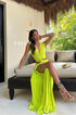 Yandan Kesilmiş Derin V Yaka Kolsuz Maxi Elbise ile cesur bir ifade yaratın. Çarpıcı yan kesimler ve derin V yaka ile tasarlanan bu polyester maksi elbise, hoş bir kesim ve modern zarafet dokunuşu sunuyor. Hafifçe esnek kumaş rahatlık sağlarken kolsuz tasarım ve maksimum uzunluk, onu her türlü görkemli durum için ideal kılar.