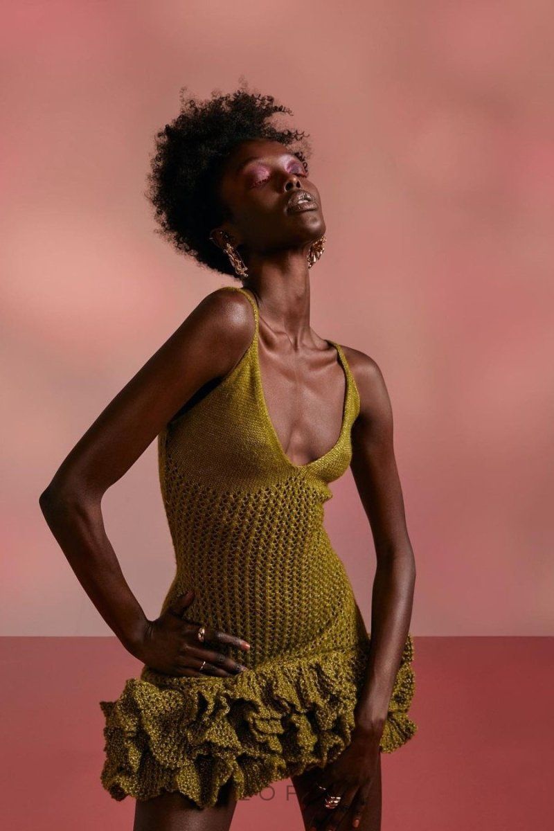 Sara V Yaka Volanlı Etek Örgü Mini Elbise