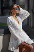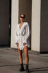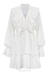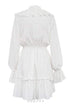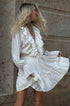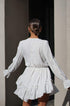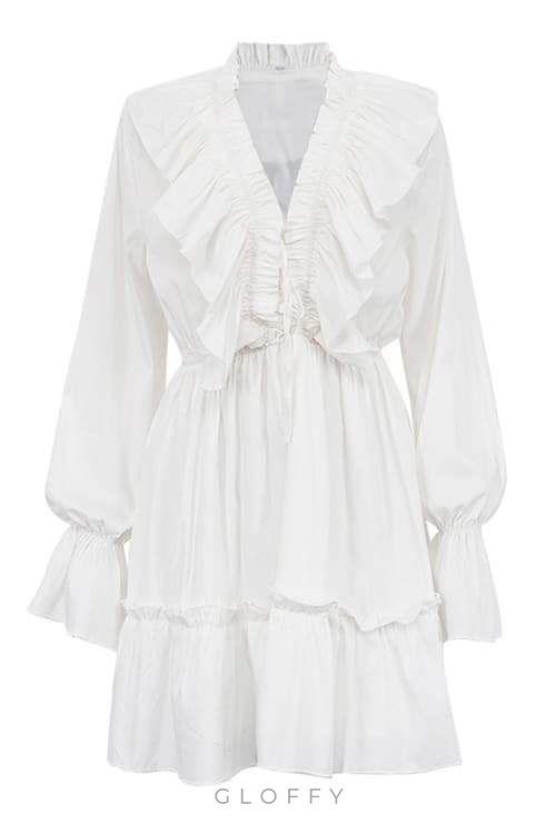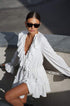 Fırfırlı Derin V Yaka Mini Elbise ile vintage çekiciliğin dokunuşunu kucaklayın. Kabarık omuzlu uzun kollu, derin V yakalı ve eğlenceli Peter Pan yakalı bu elbise, klasik ve çağdaş tarzın mükemmel bir karışımıdır. A kesimli siluet ve mini uzunluk, göz kamaştırıcı ve kadınsı bir görünüm yaratıyor.