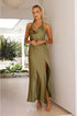 Sofistikeliğin gerçek bir vücut bulmuş hali olan Sian Elbisemizle akşam tarzınızı yükseltin. Arkasında kravat detayı ve lüks dekolte yakasıyla yular tarzına sahip bu elbise zarafet yayıyor. Saten görünümlü malzeme cazibesini artırırken yandan bölme, klasik maksimum uzunluğa cazibeli bir dokunuş katıyor.