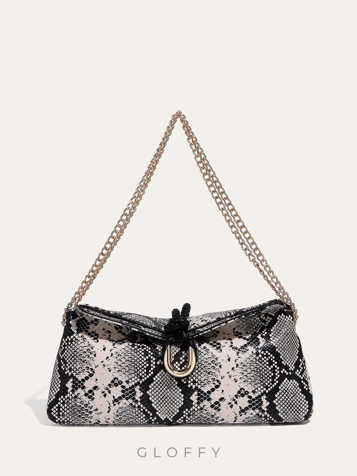 Yılan Derisi Desenli Zincir Askılı Çanta
