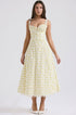 Stil Notu: Eloire elbise, vintage esintili çiçek deseni ve zarif dantel detaylarıyla pastoral bir zarafeti yansıtıyor. Omzu açık formu ve korsaj etkili gövdesiyle feminenliği öne çıkarırken, uçuşan etek kesimiyle romantik bir silüet sunar.