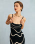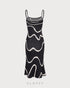 Mirelle Dalga Desenli Triko Askılı Midi Elbise