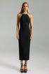 Selene Taş İşlemeli Halter Yaka Maxi Elbise