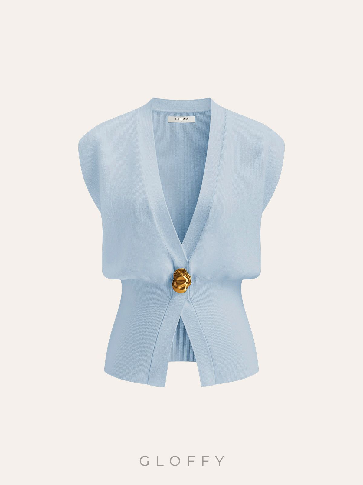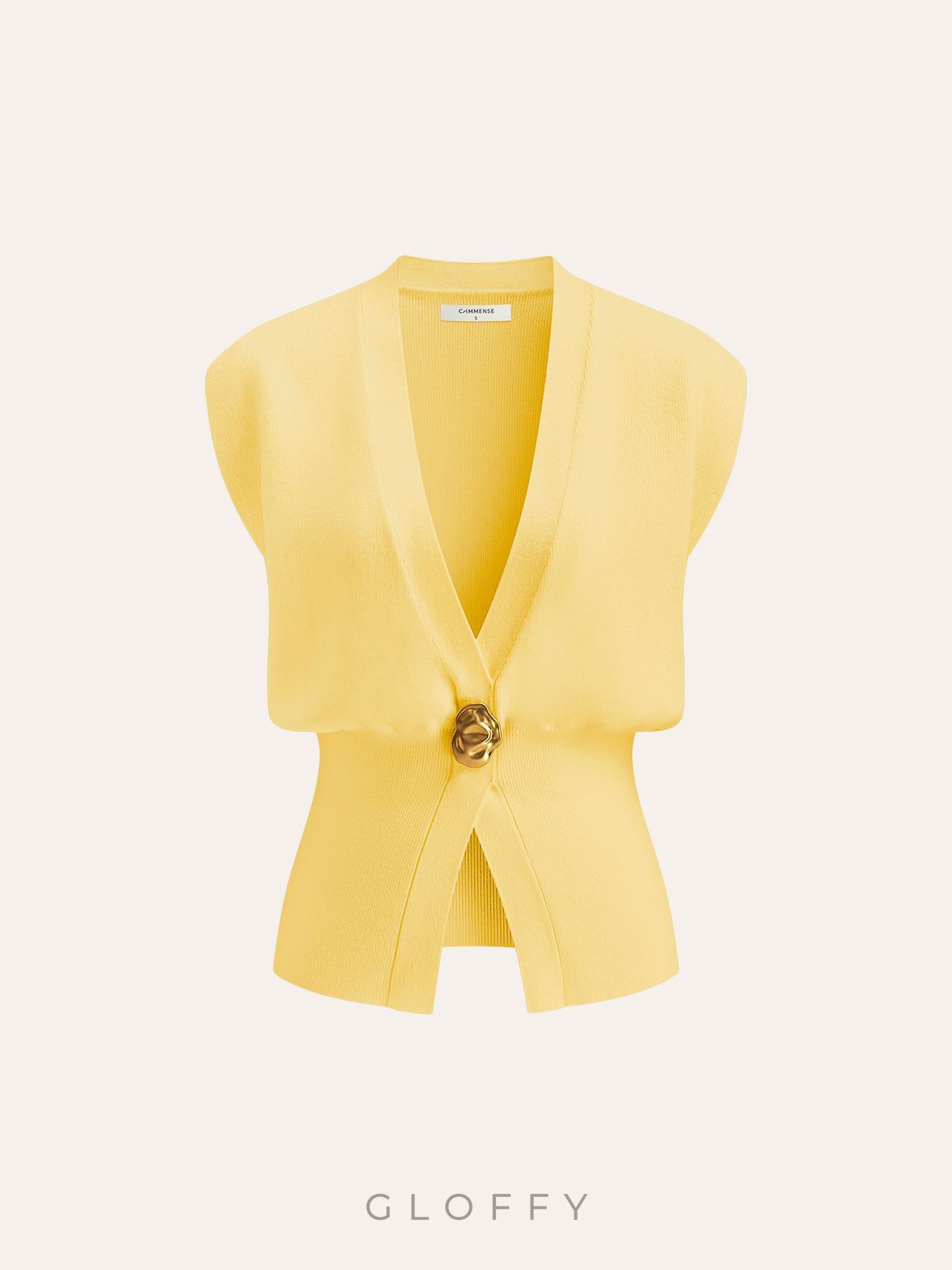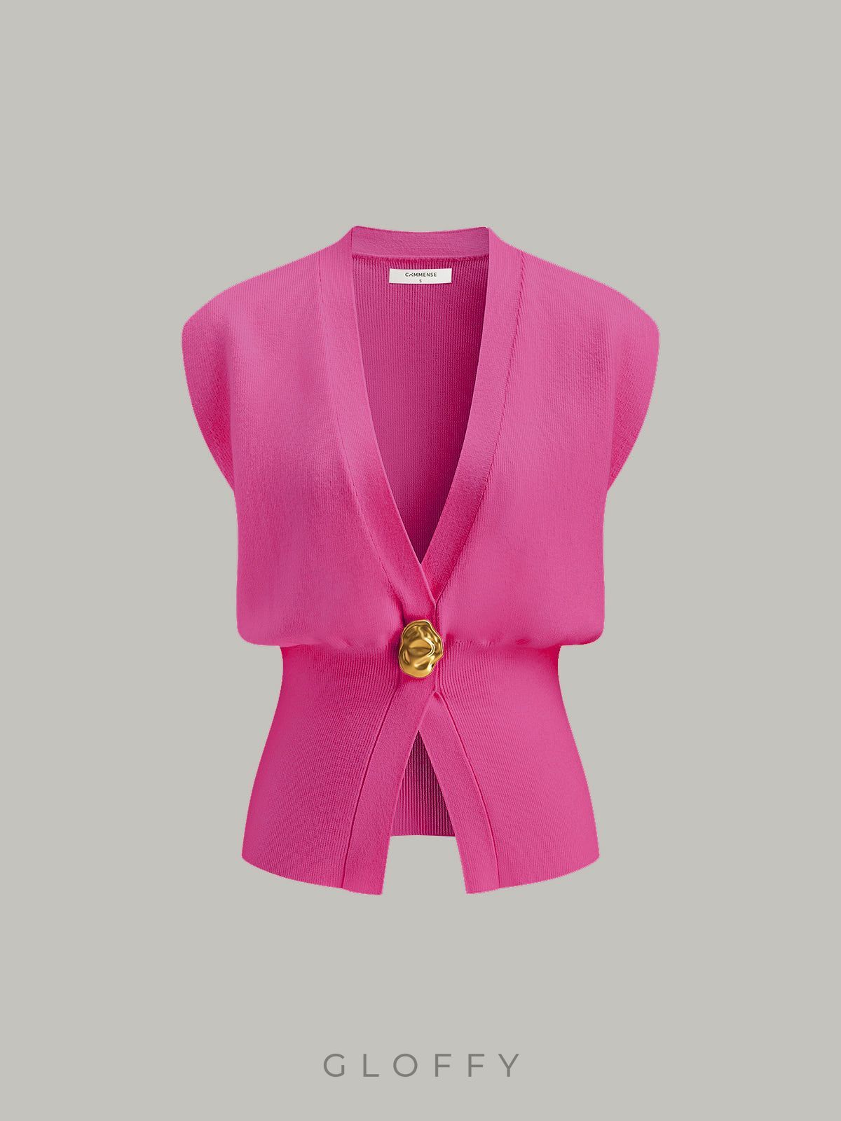 V Yaka Tek Düğmeli Basic Triko Yelek – Siyah
