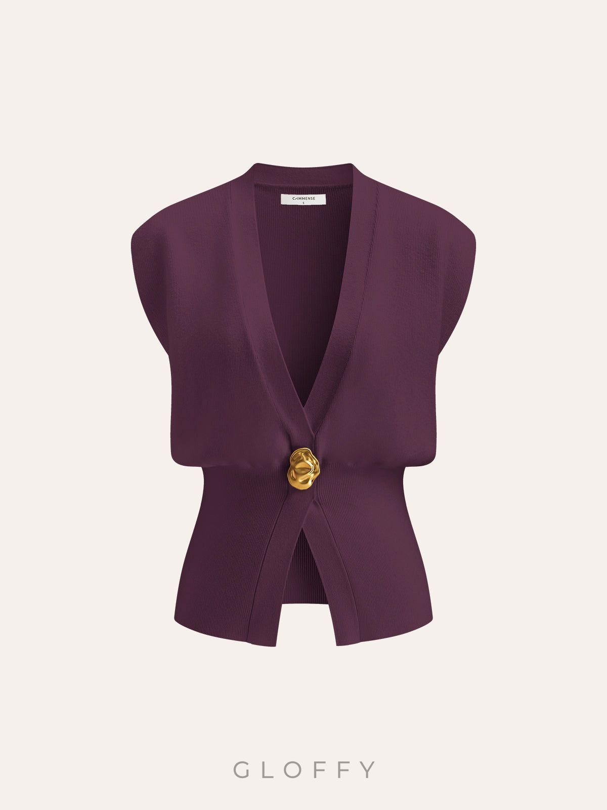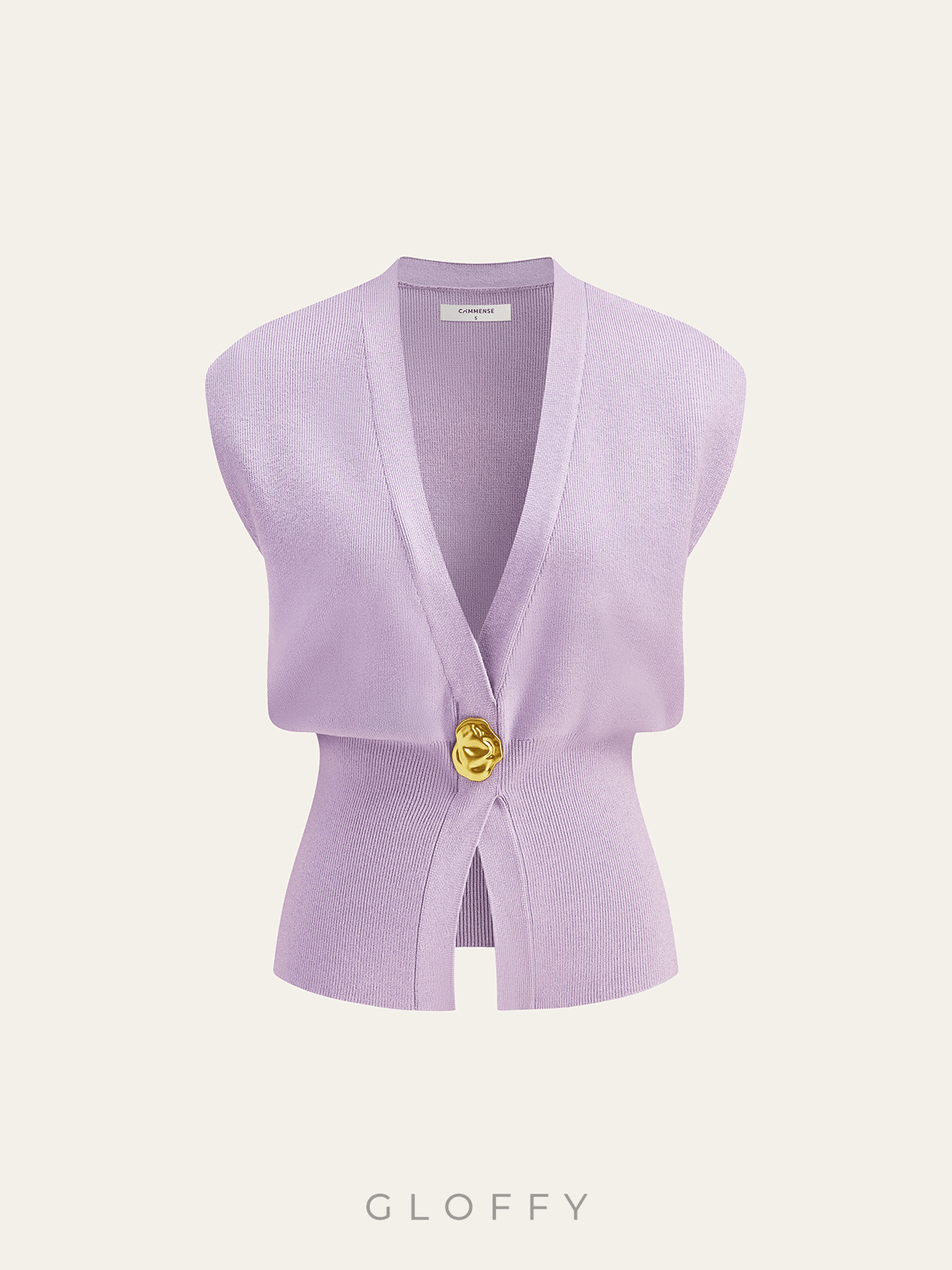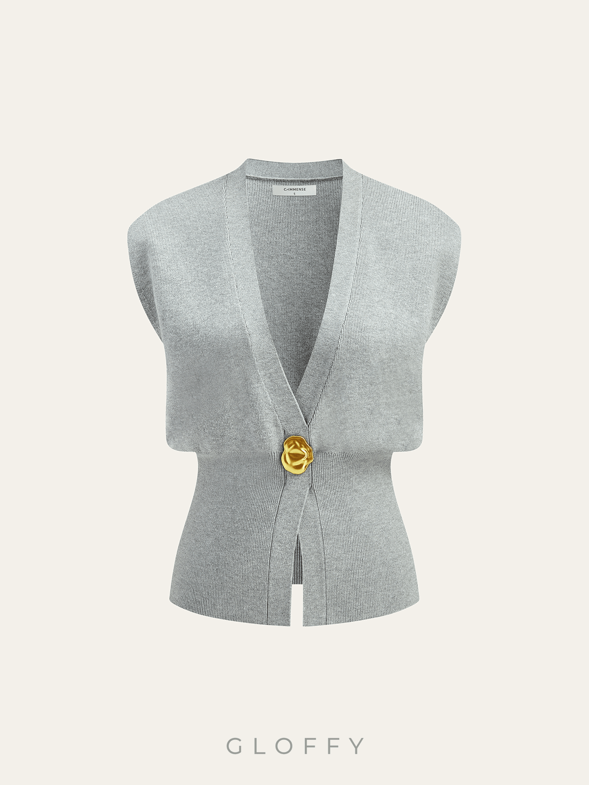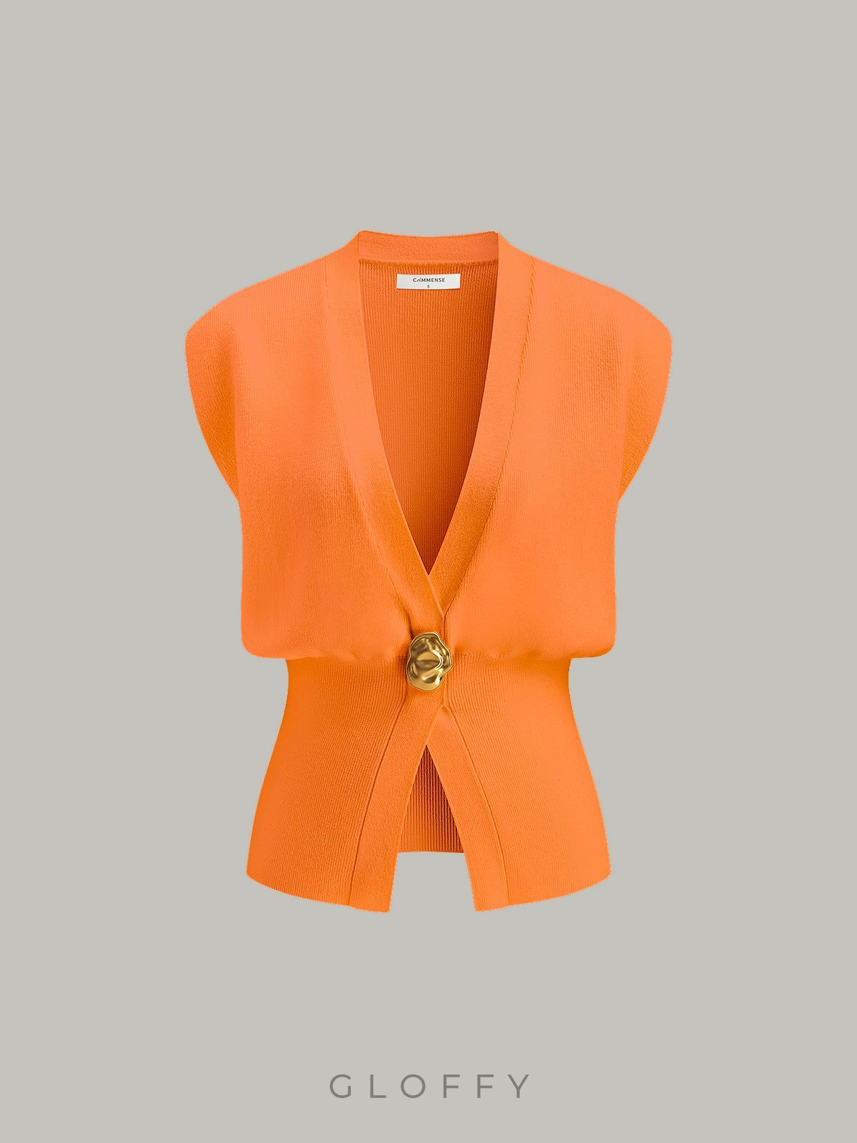 V Yaka Tek Düğmeli Basic Triko Yelek – Siyah