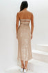 Payetli Straplez Tüp Elbisemizle ışıl ışıl parlayın ve muhteşem bir giriş yapın. Göz kamaştırmak için tasarlanan bu sırtı açık elbise, ışığı güzel bir şekilde yakalayan, baştan sona göz alıcı payet süslemelere sahiptir. Boru stili ve yüksek esnekliğe sahip kumaş mükemmel bir uyum sağlarken elastik bant rahat bir destek sağlar.